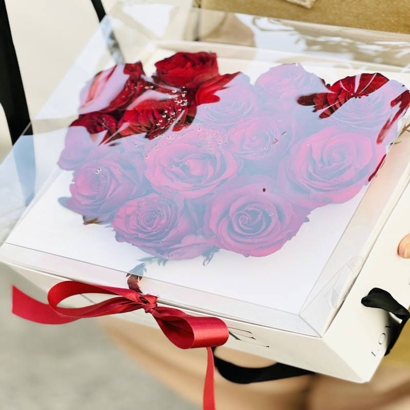 The style of the fashion box and 12 red roses in the clear plastic cover is perfect for expressing your love and care.